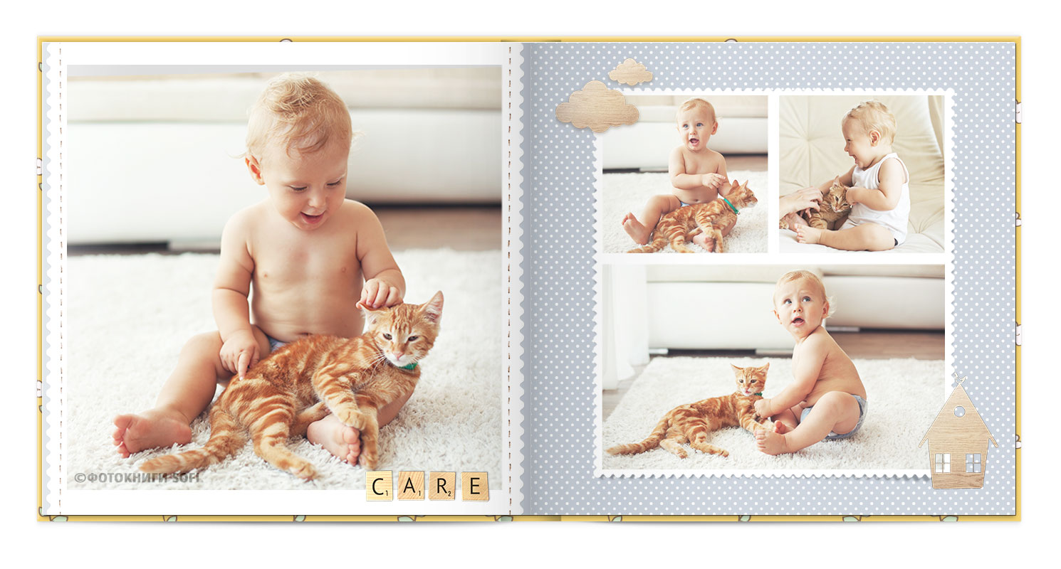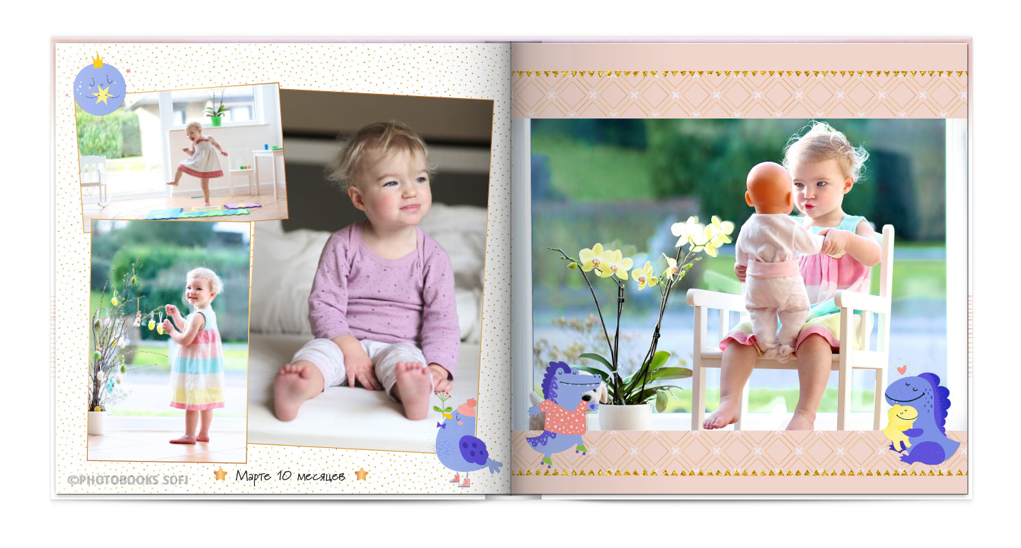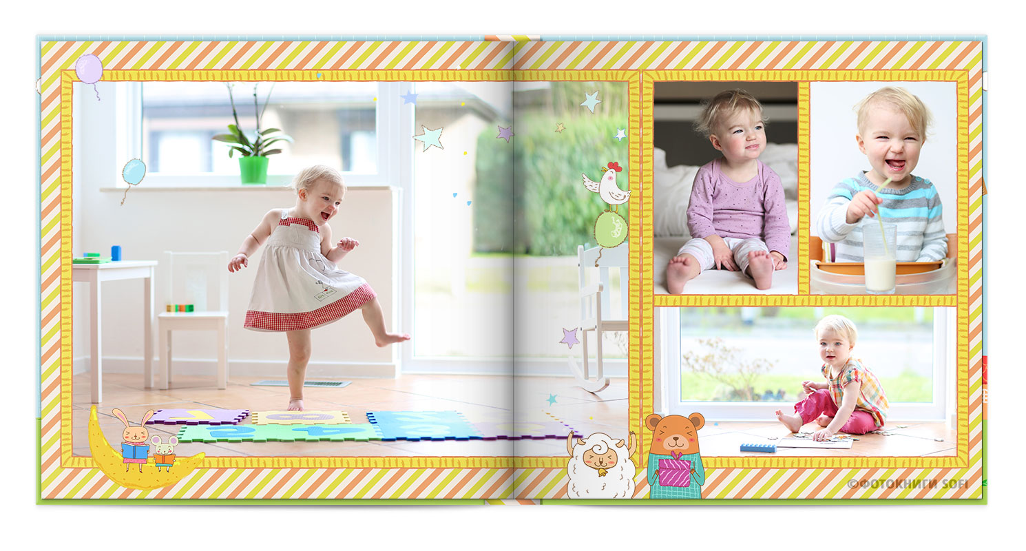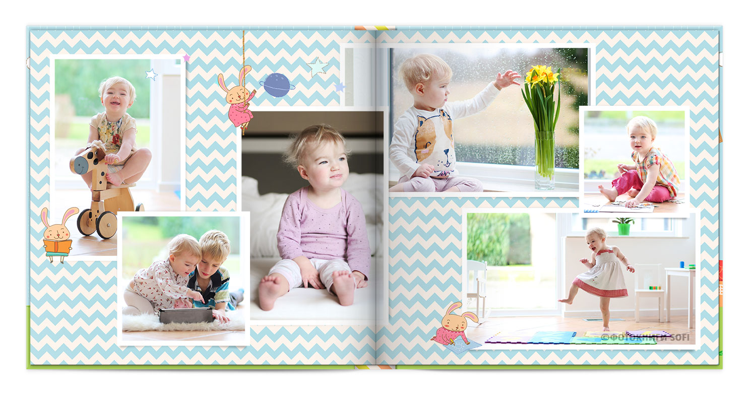 Щаслива історія життя малюка: перша посмішка, перші кроки і багато цікавих моментів в красивій фотокнизі.