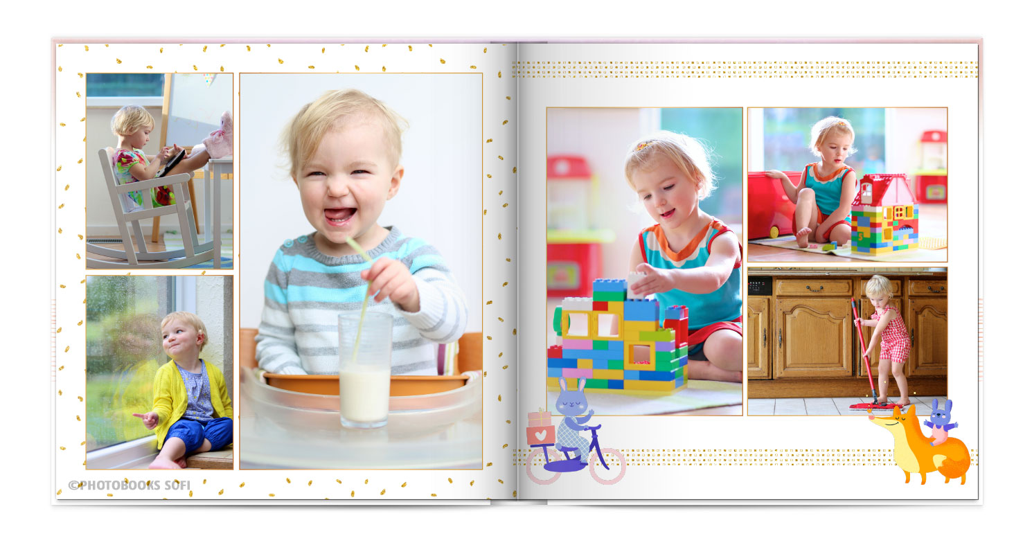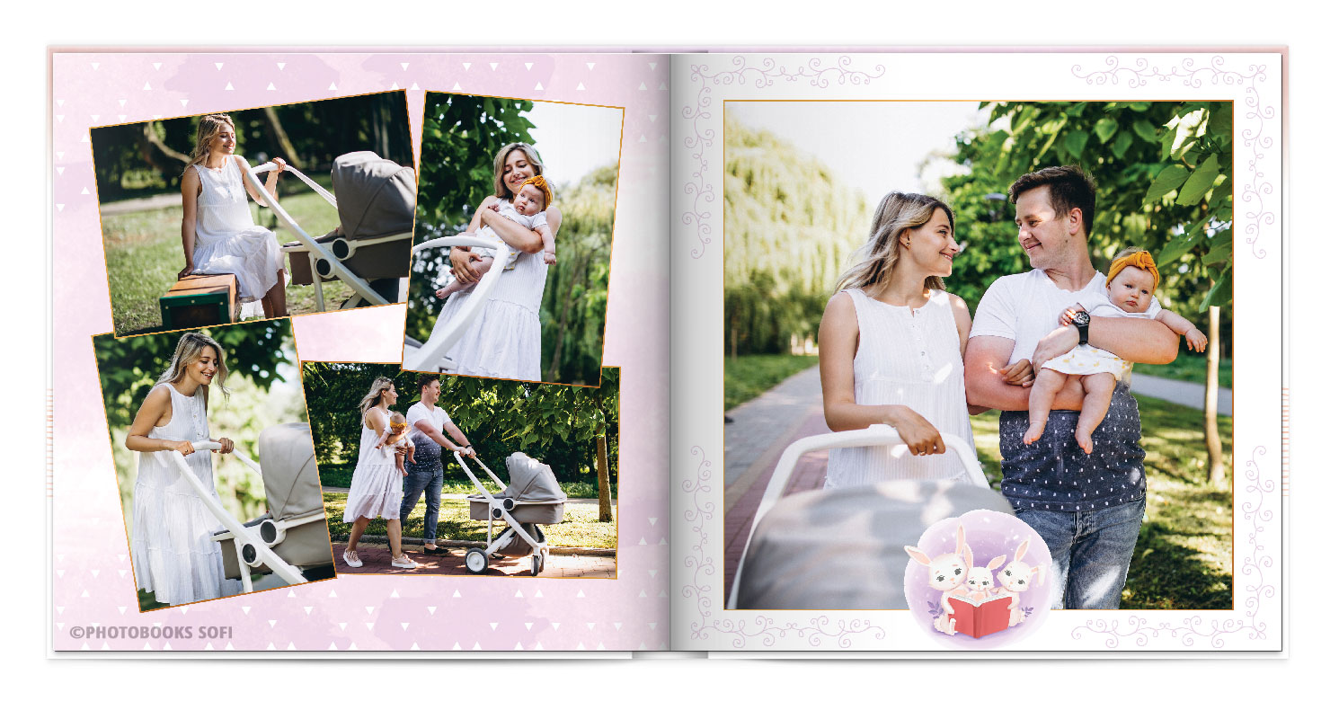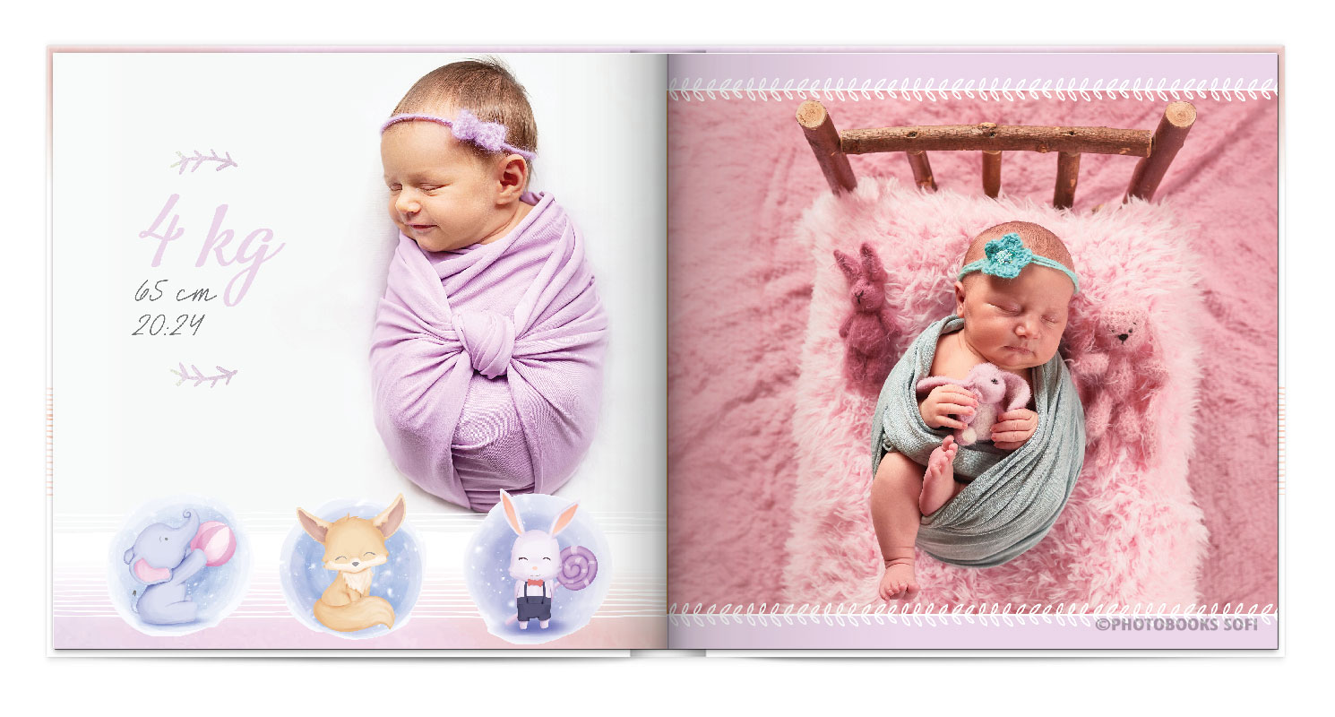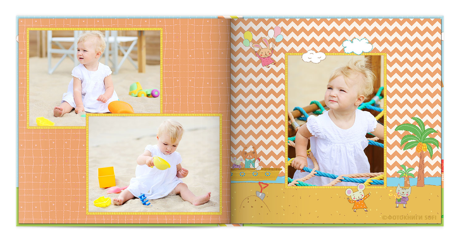 Щаслива історія життя малюка: перша посмішка, перші кроки і багато цікавих моментів в красивій фотокнизі.
