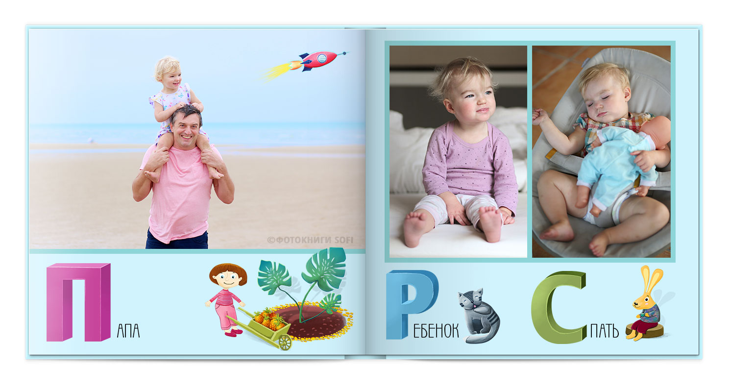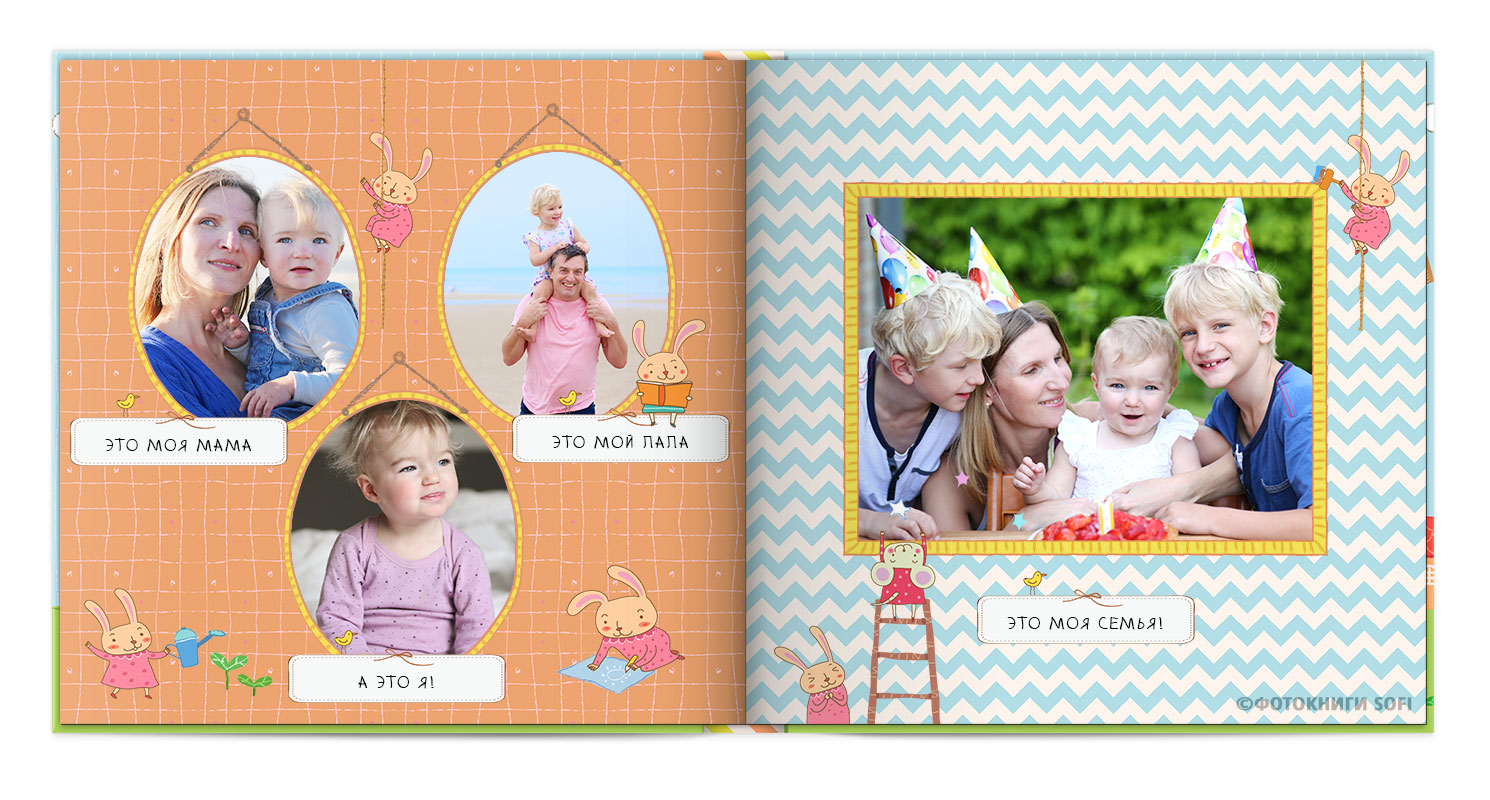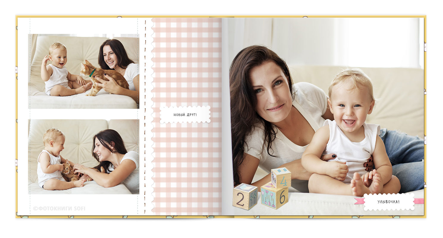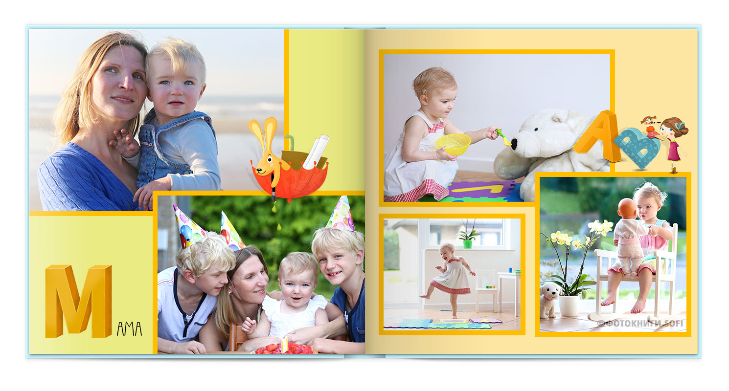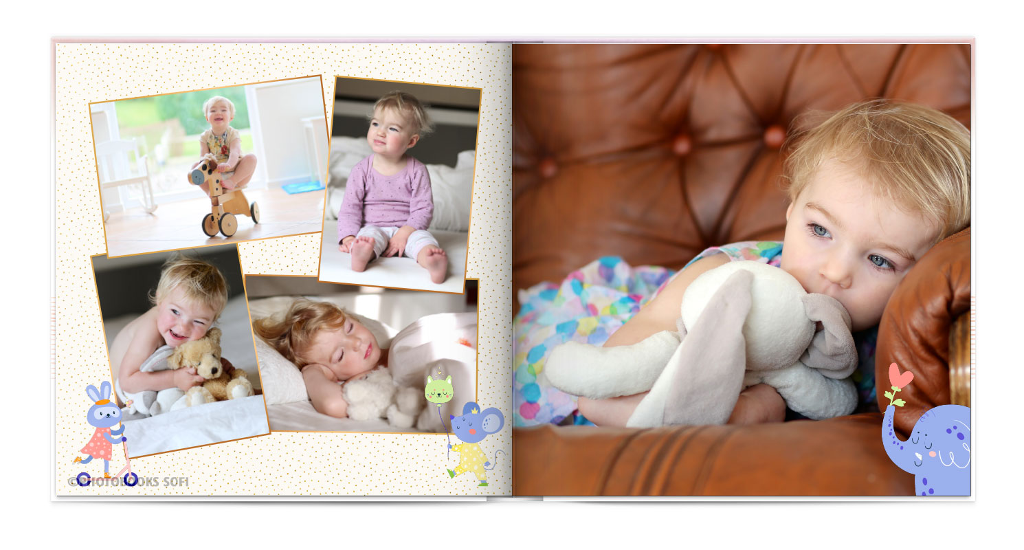 Щаслива історія життя малюка: перша посмішка, перші кроки і багато цікавих моментів в красивій фотокнизі.