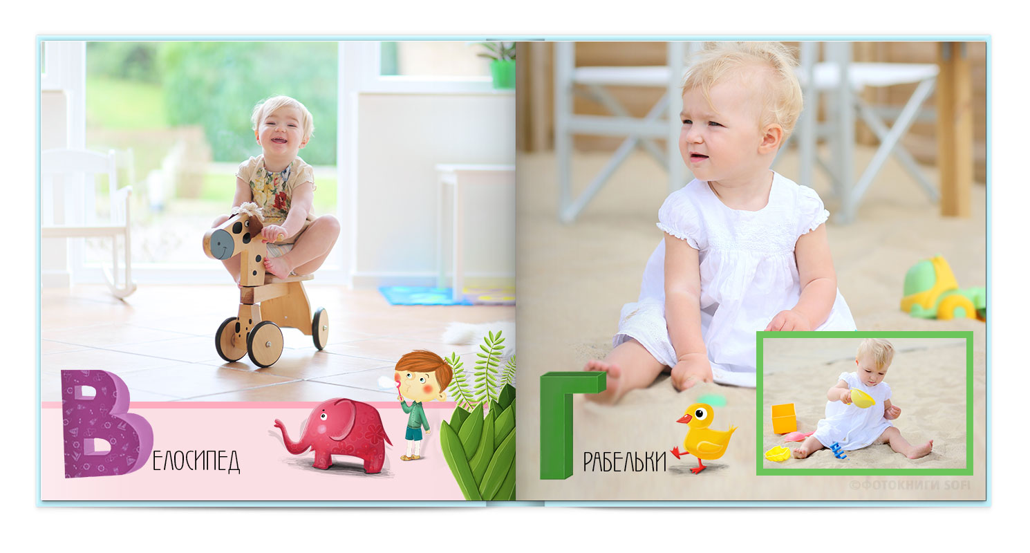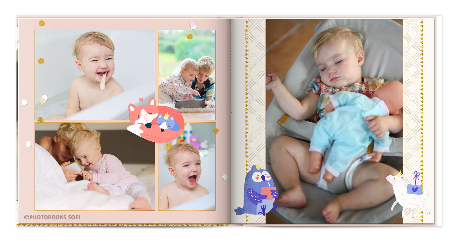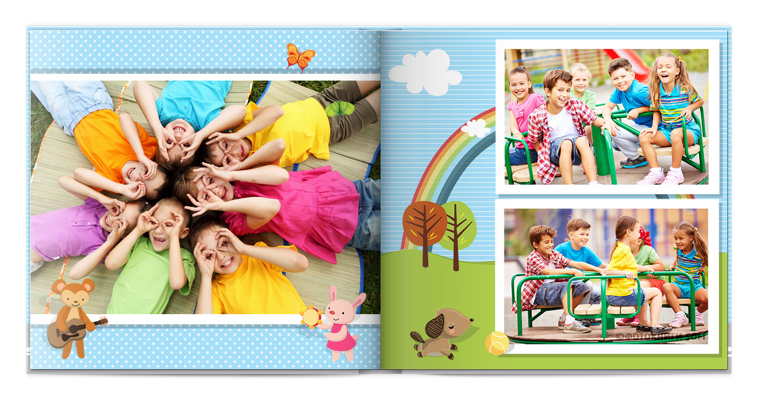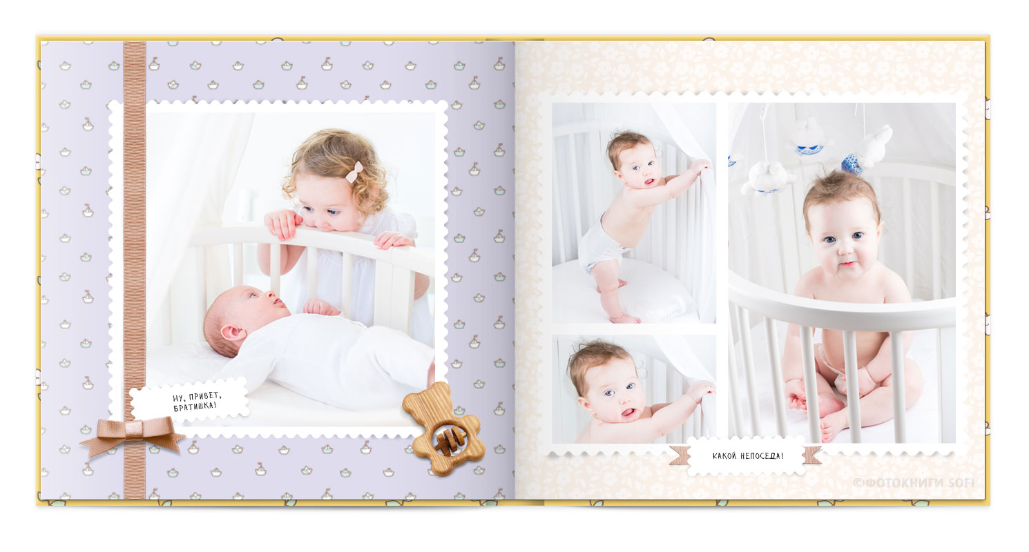 Щаслива історія життя малюка: перша посмішка, перші кроки і багато цікавих моментів в красивій фотокнизі.