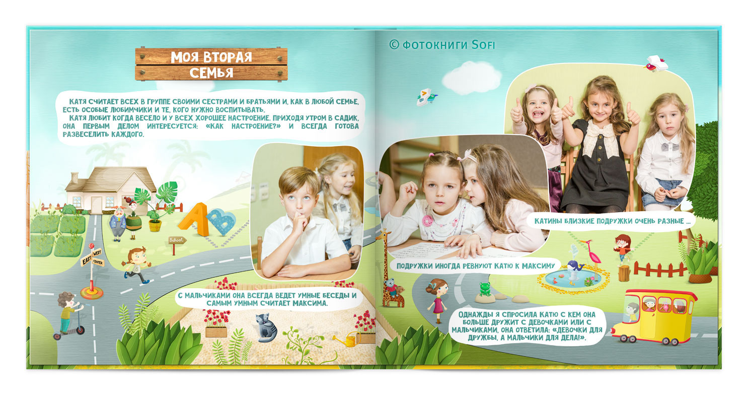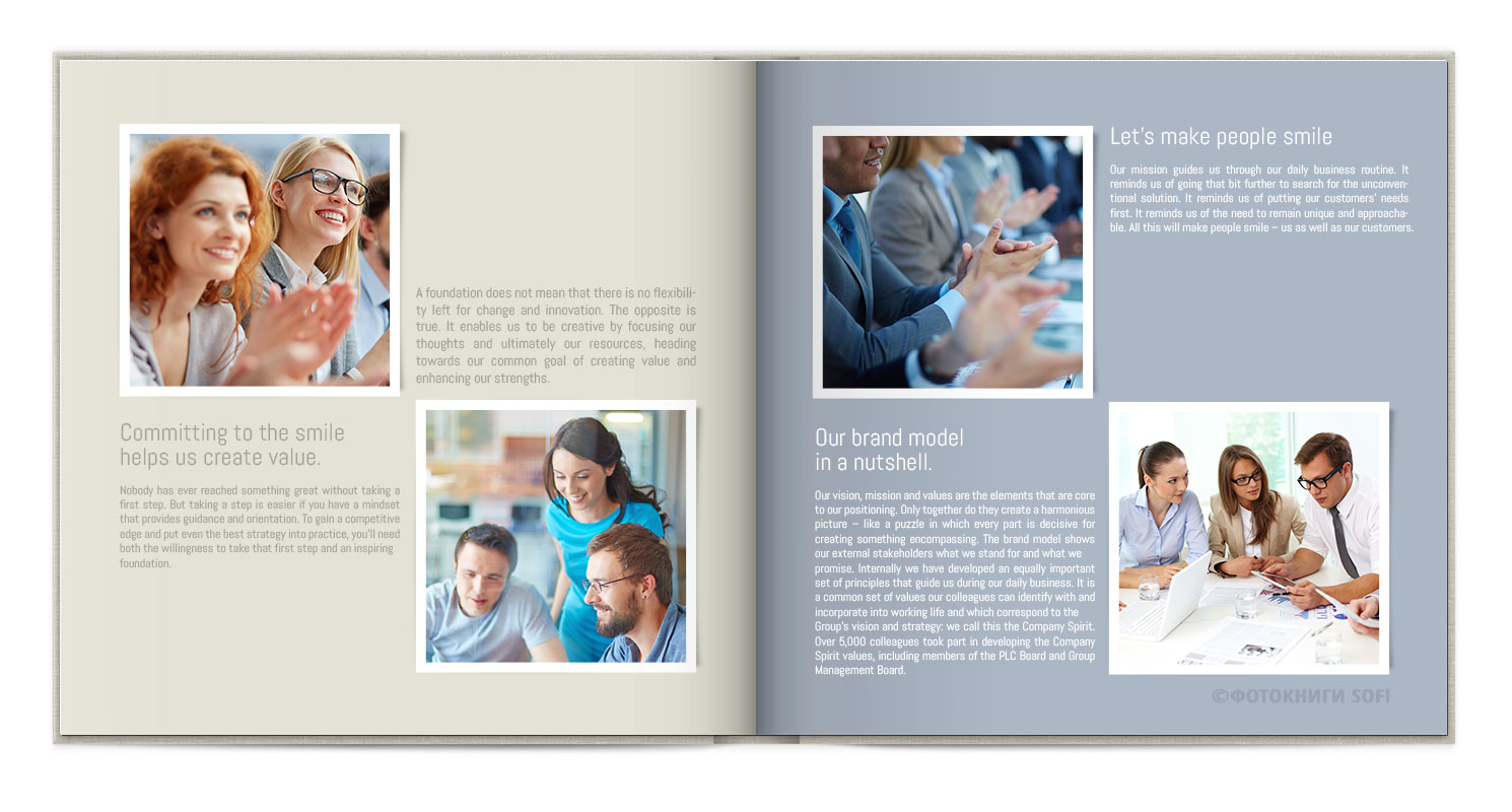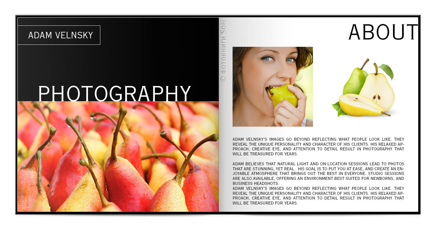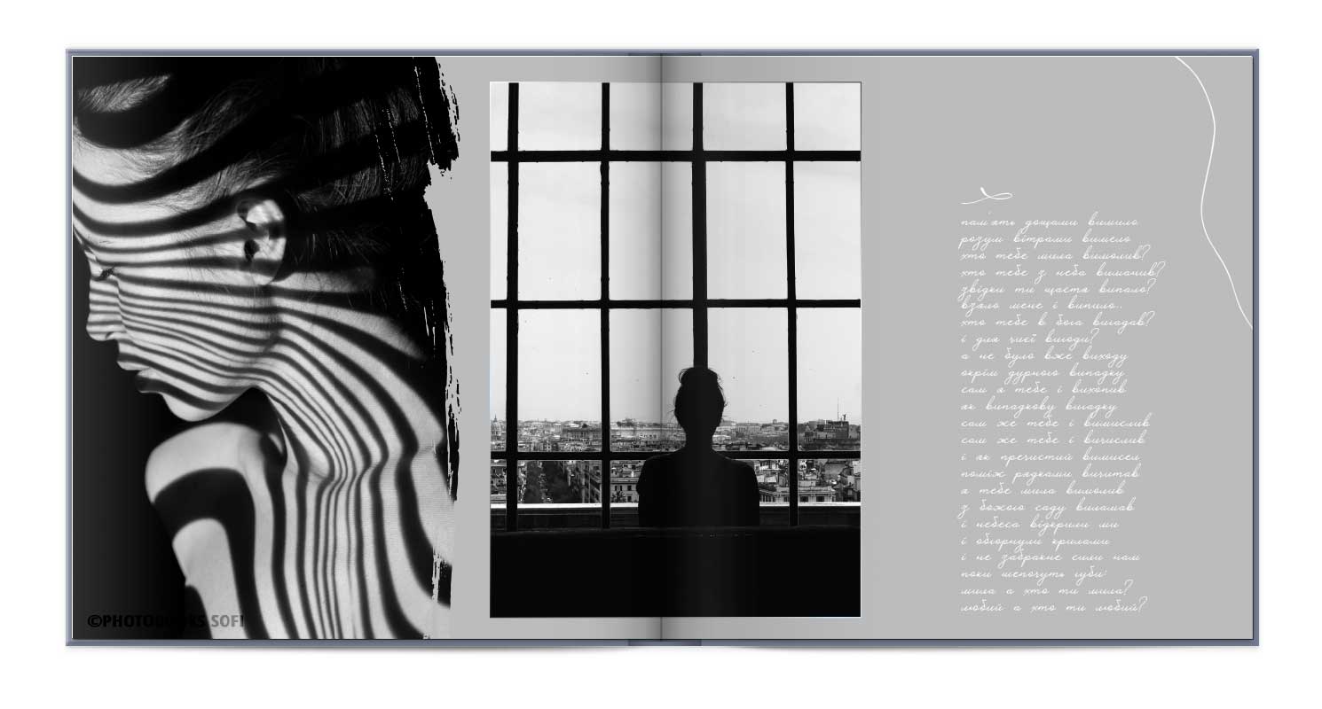 Потім, дизайнер висилає Вам макет на узгодження, в якому буде видно обкладинка і усі розвороти книги. Уважно перегляньте макет, перевірте розміщення фото і коректність текстів.