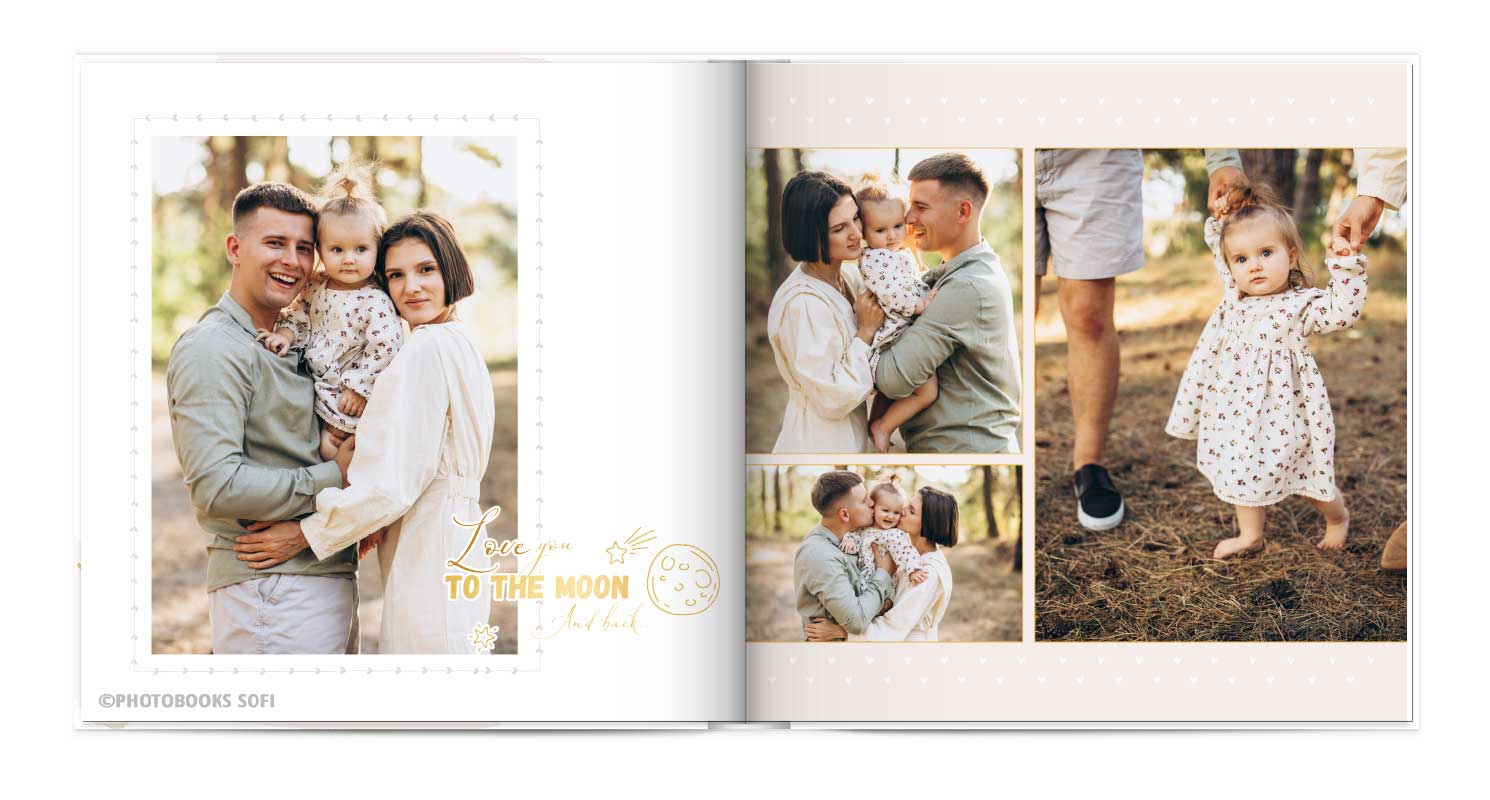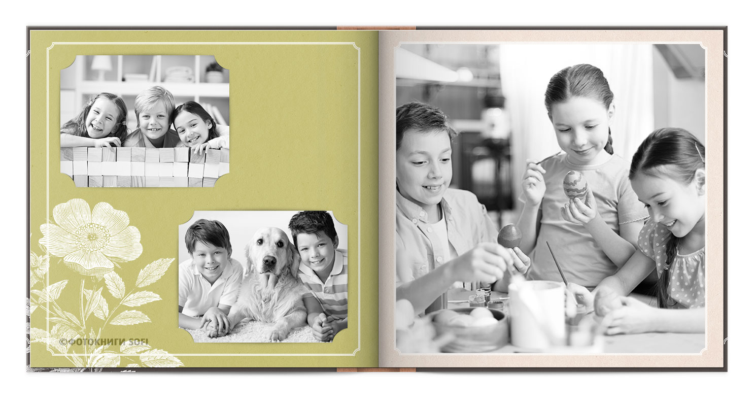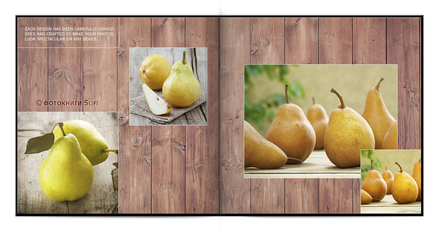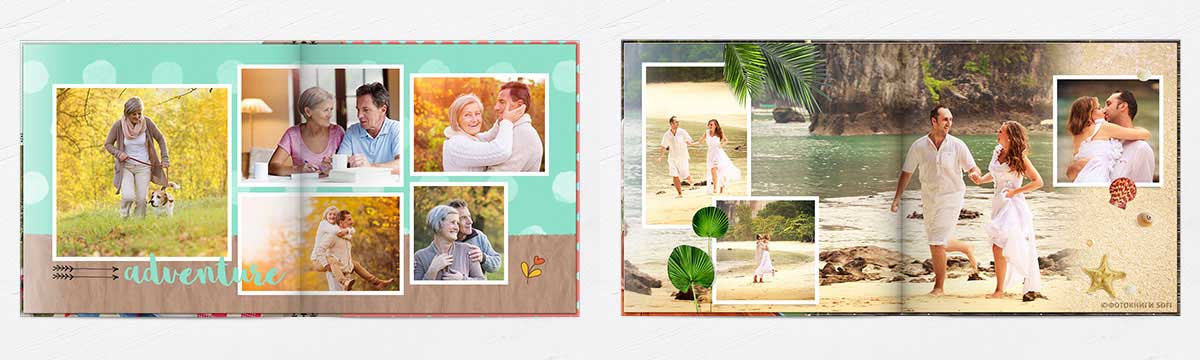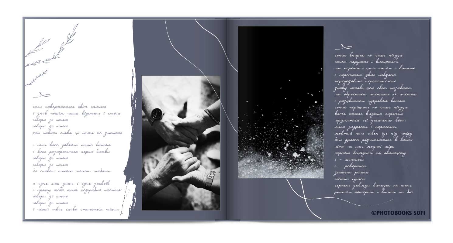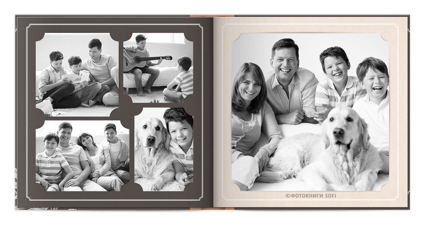 В фотокнигах використовується фотодрук на преміальному фотопапері та твердий, зносостійкий варіант палітурки