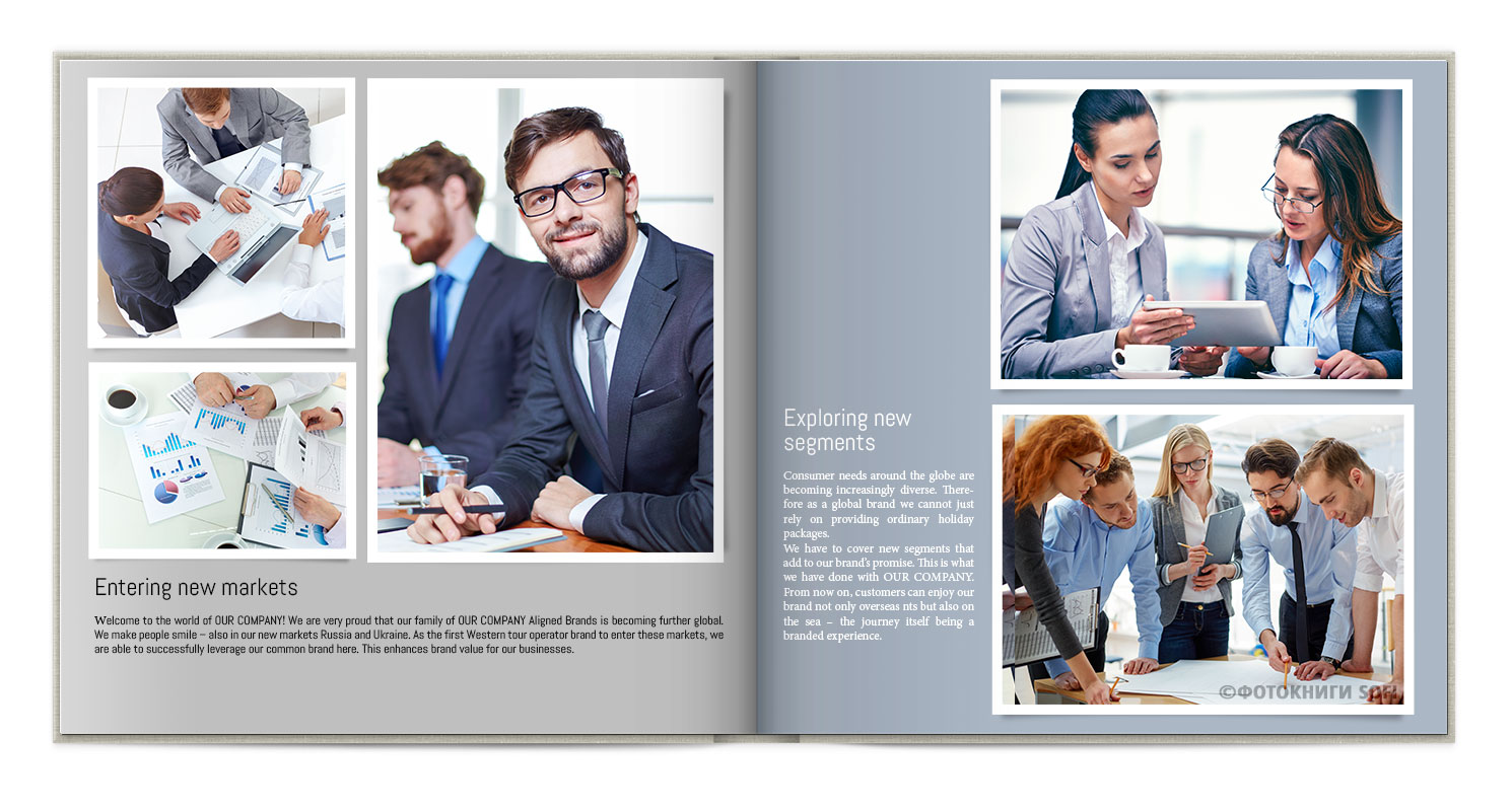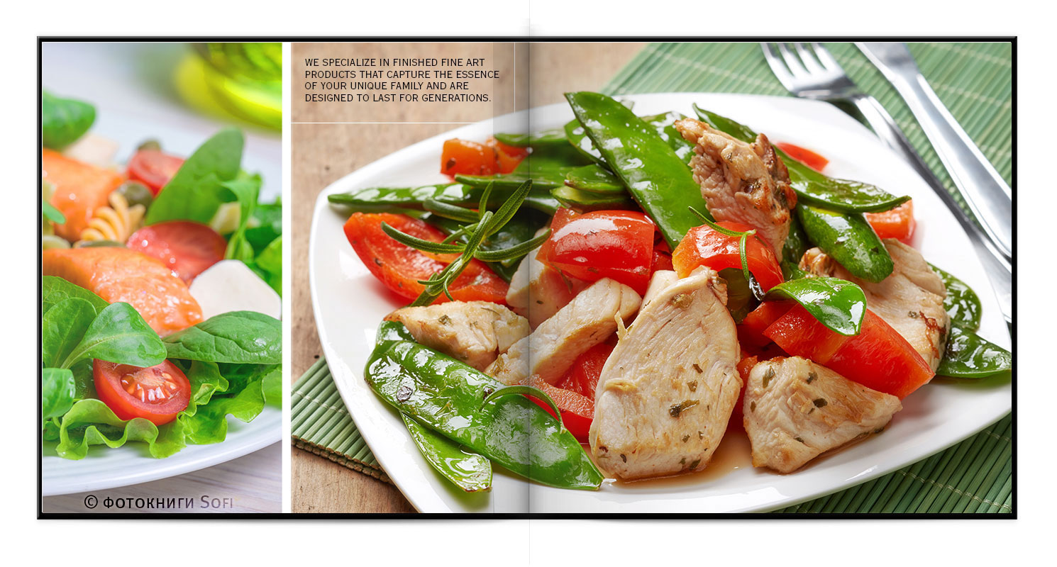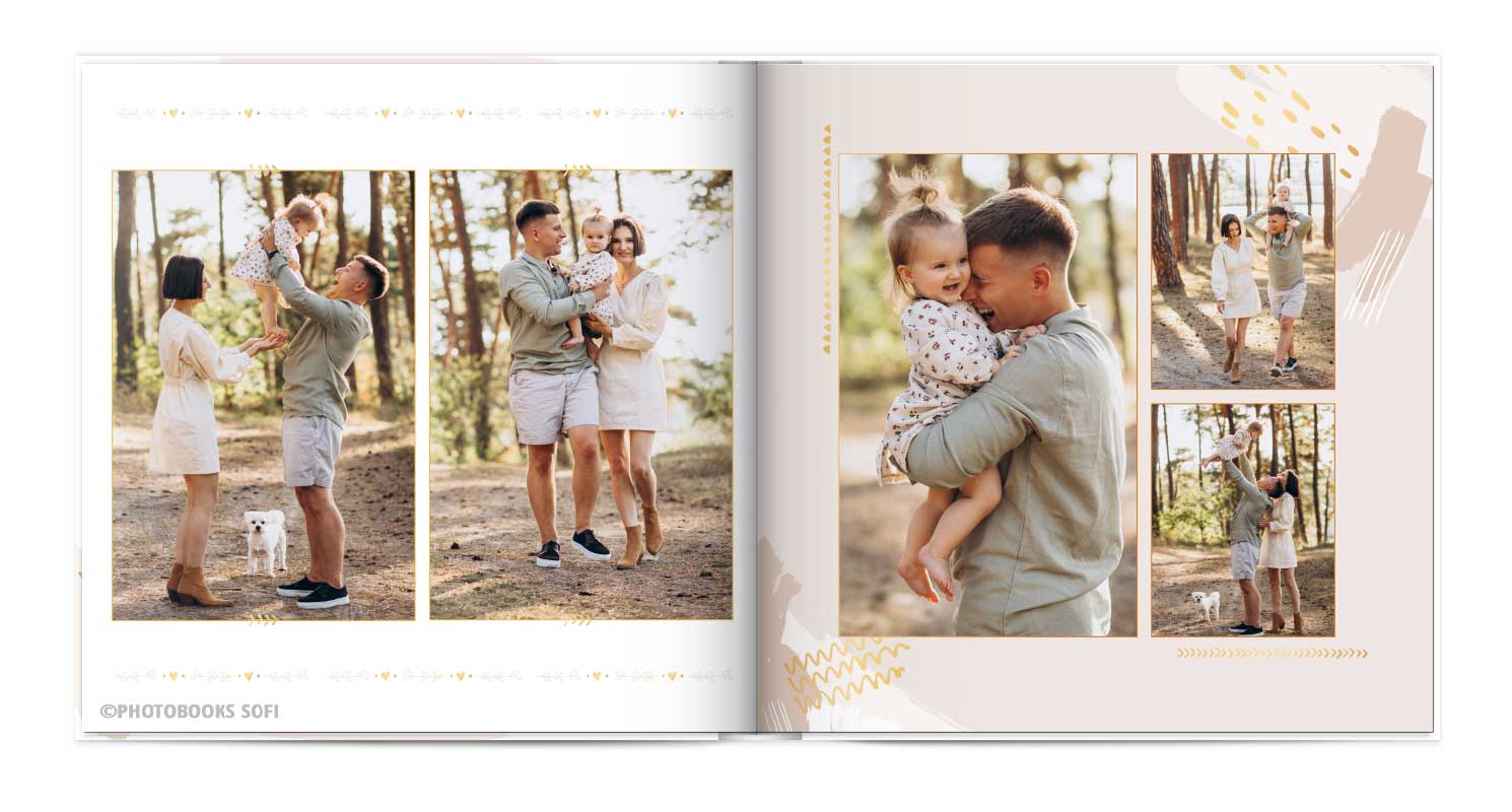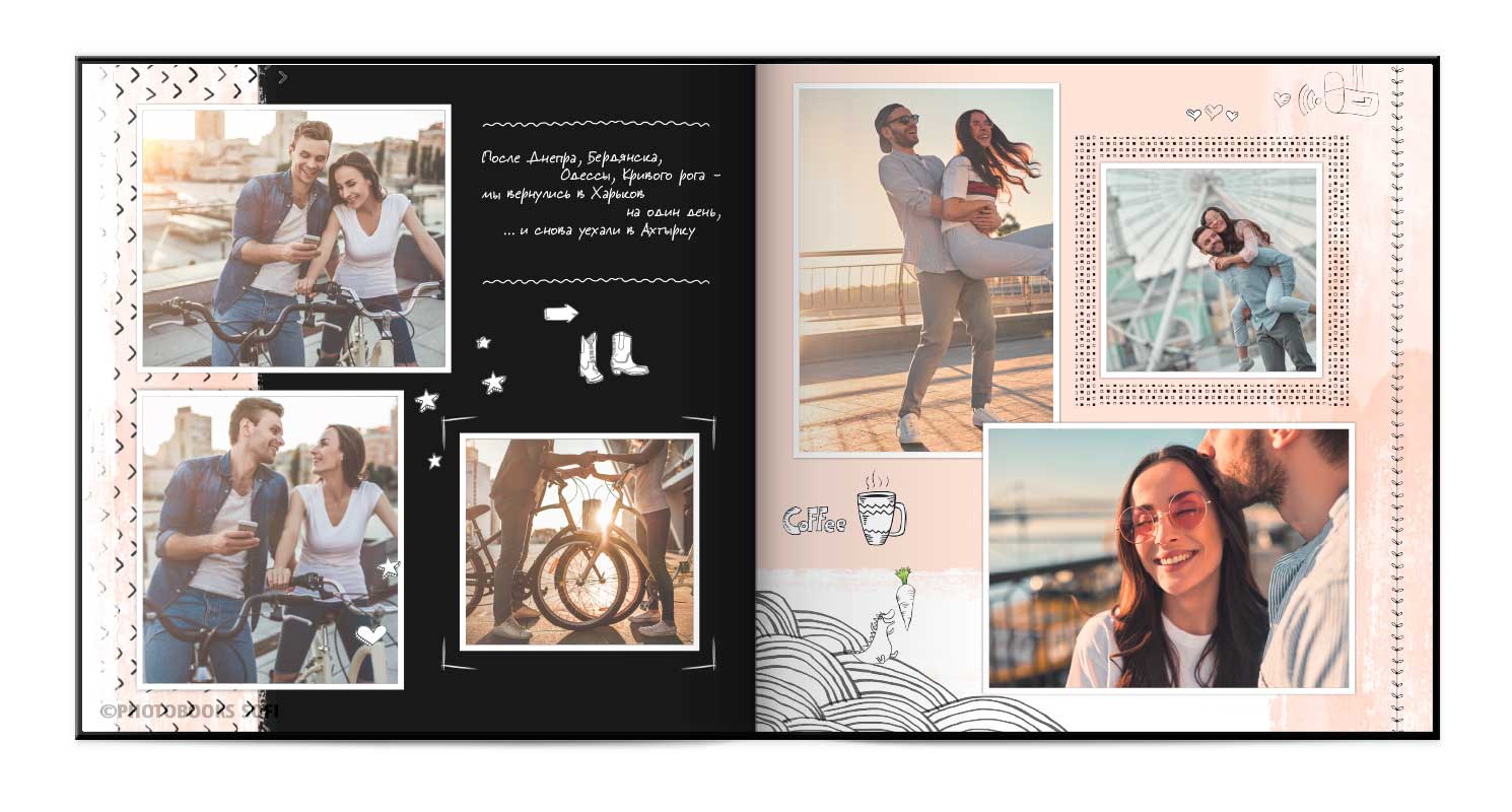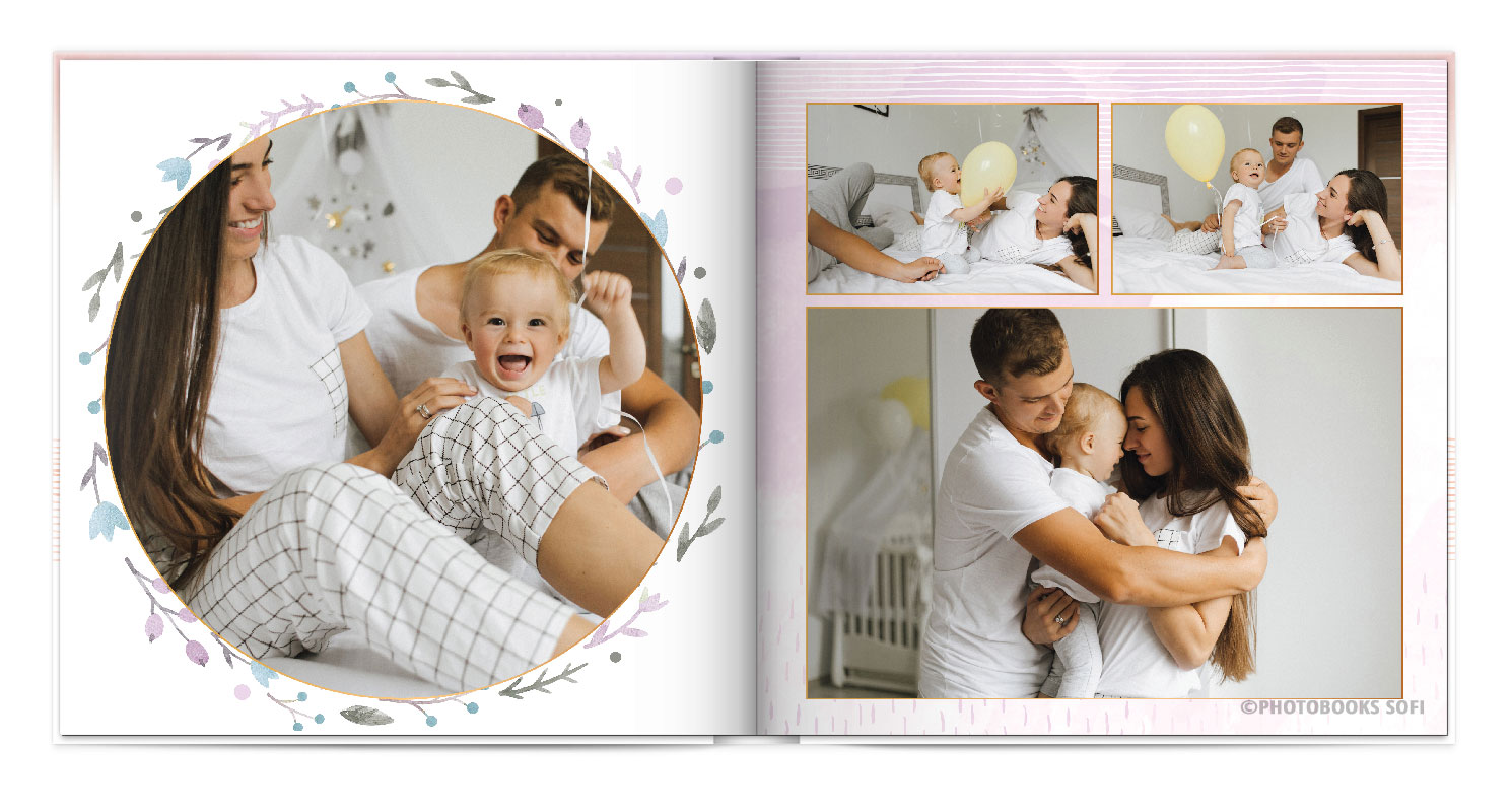 В фотокнигах використовується фотодрук на преміальному фотопапері та твердий, зносостійкий варіант палітурки