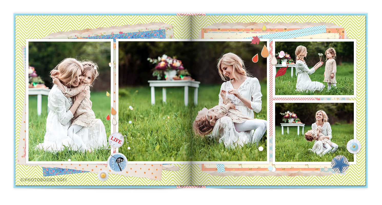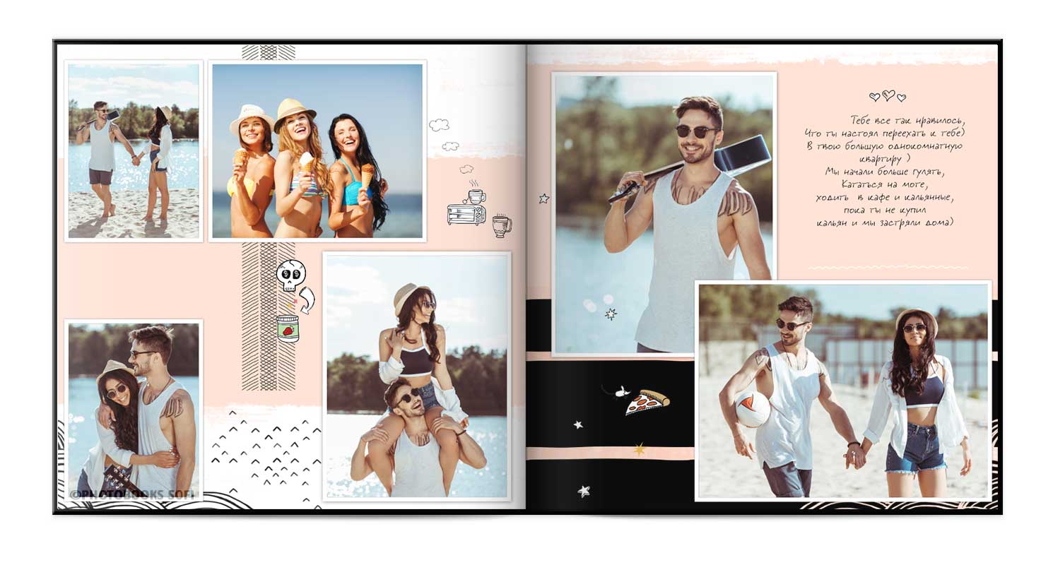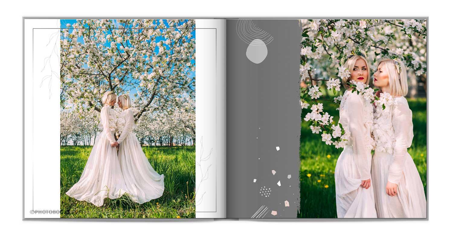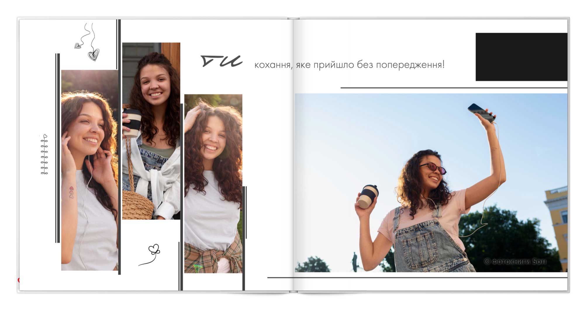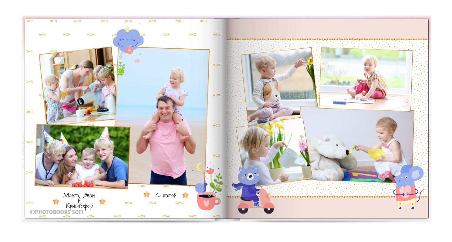 В фотокнигах використовується фотодрук на преміальному фотопапері та твердий, зносостійкий варіант палітурки