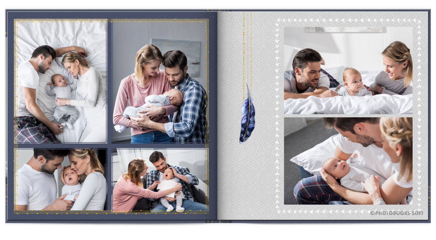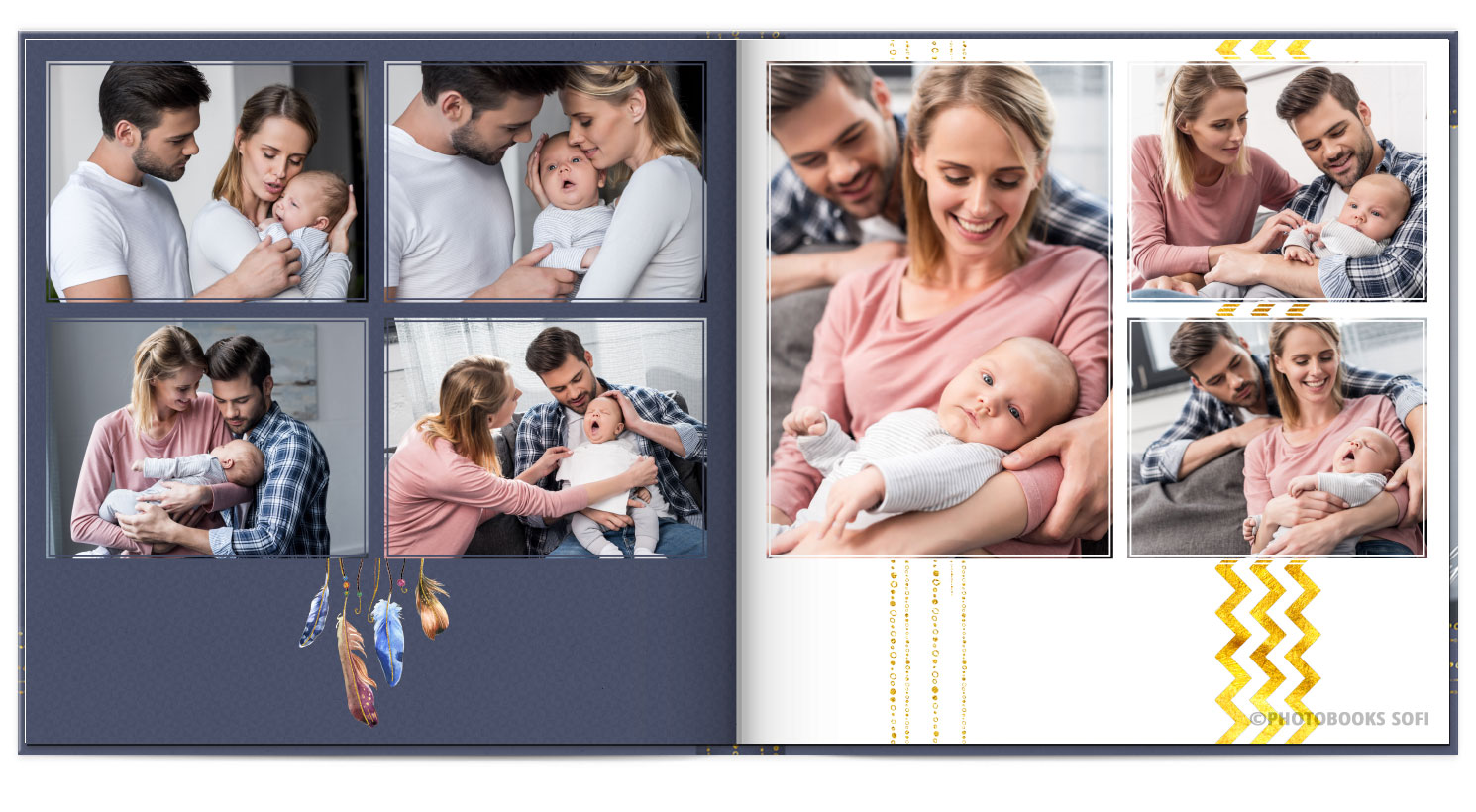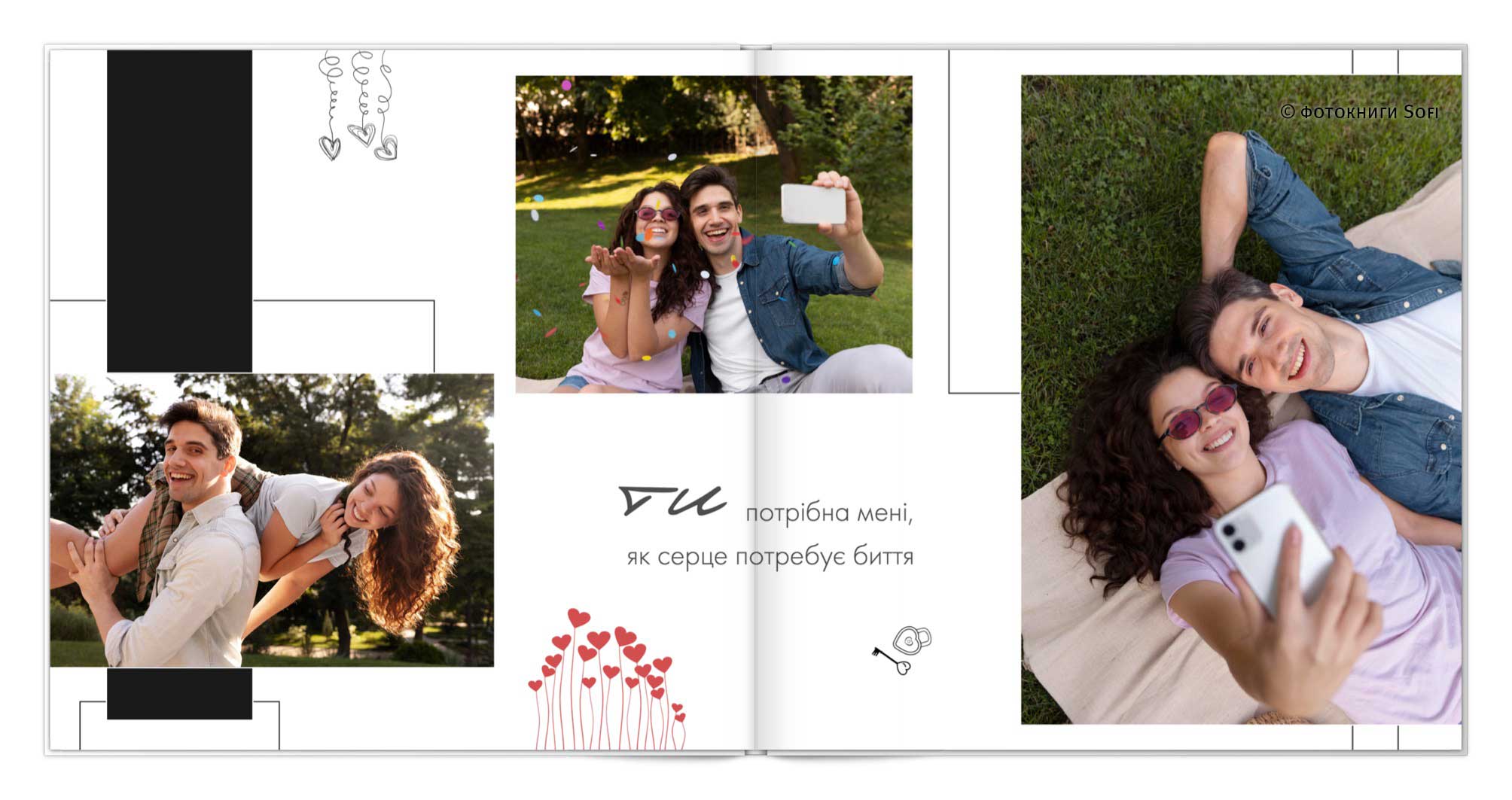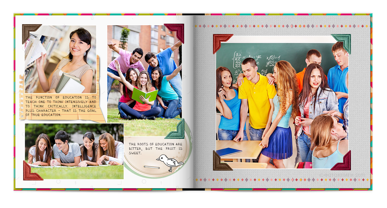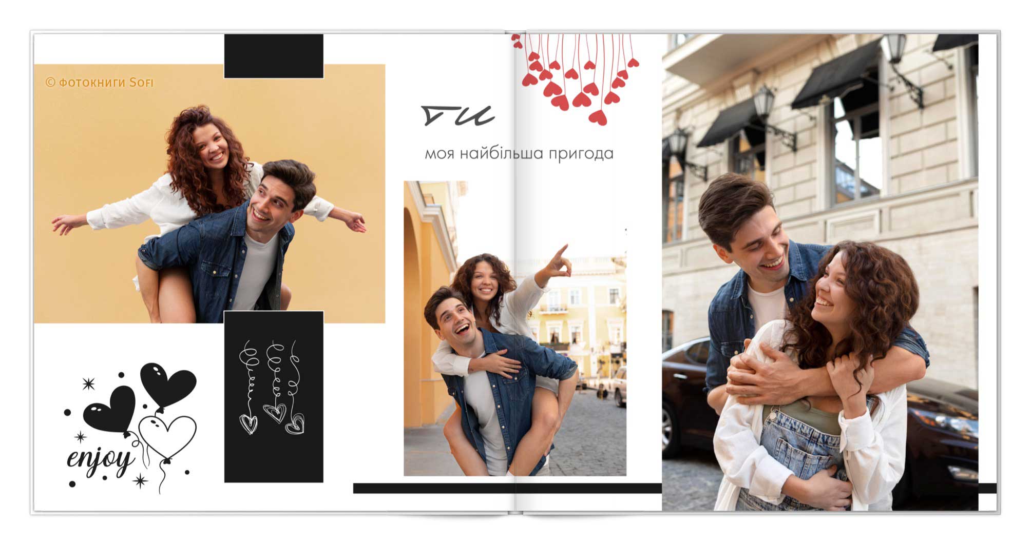 В фотокнигах використовується фотодрук на преміальному фотопапері та твердий, зносостійкий варіант палітурки