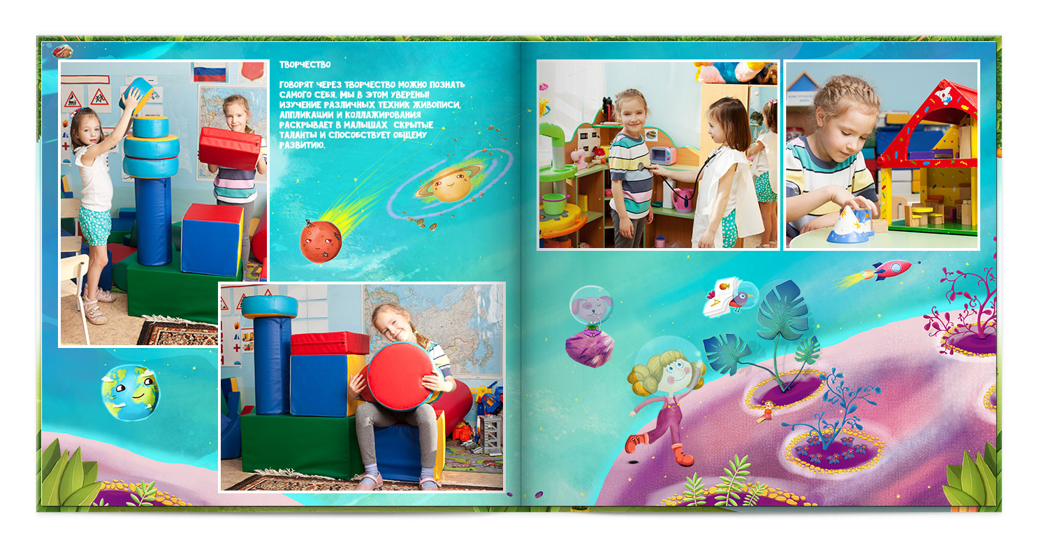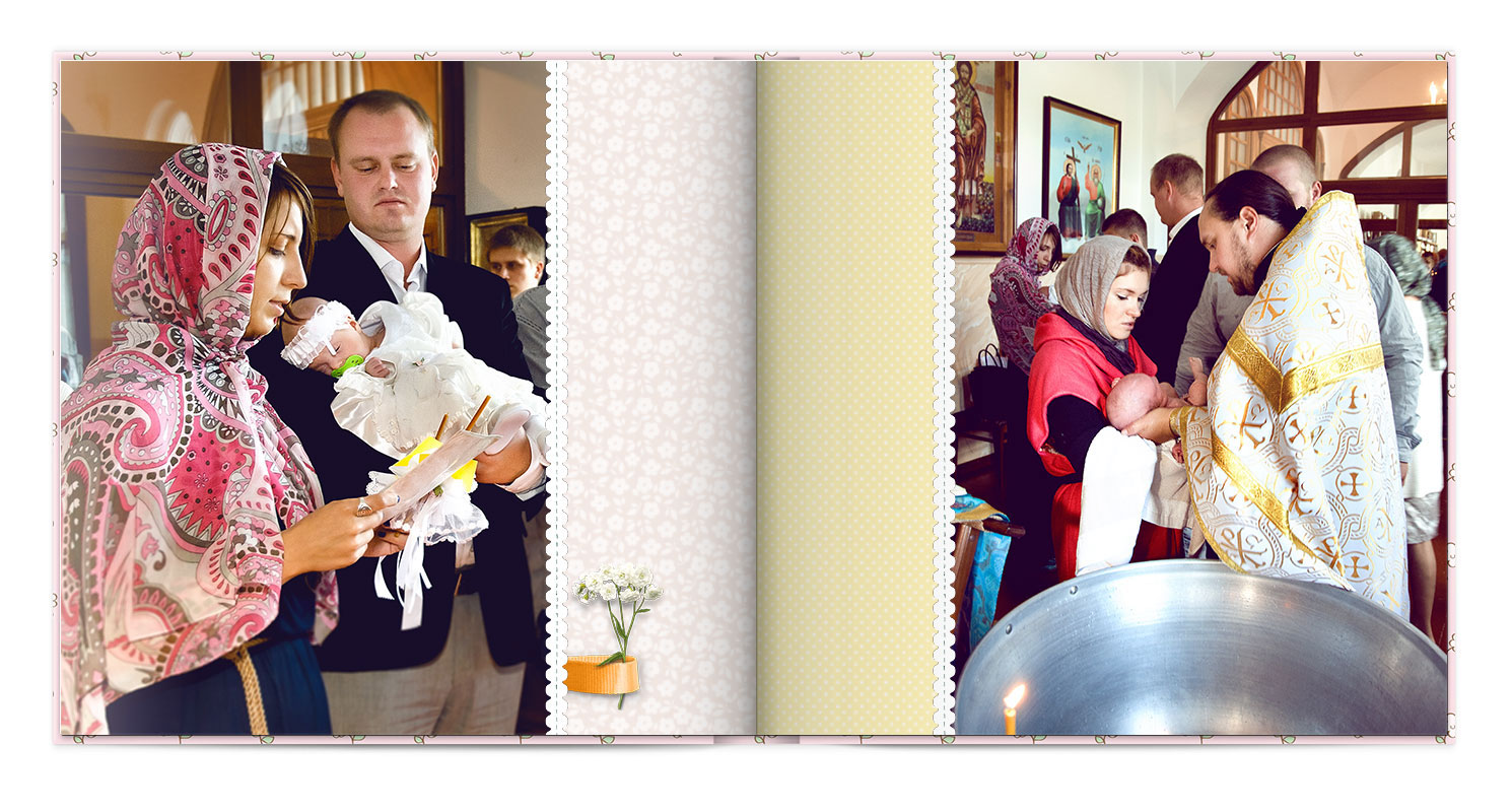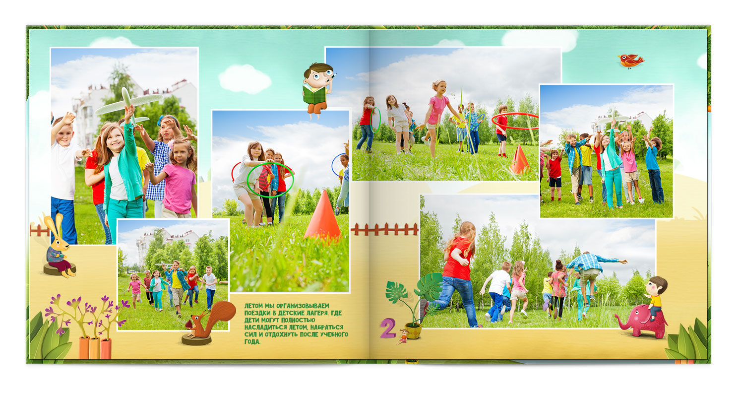 Дизайнер розміщує фото на сторінках, робить корекцію, додає елементи оформлення.