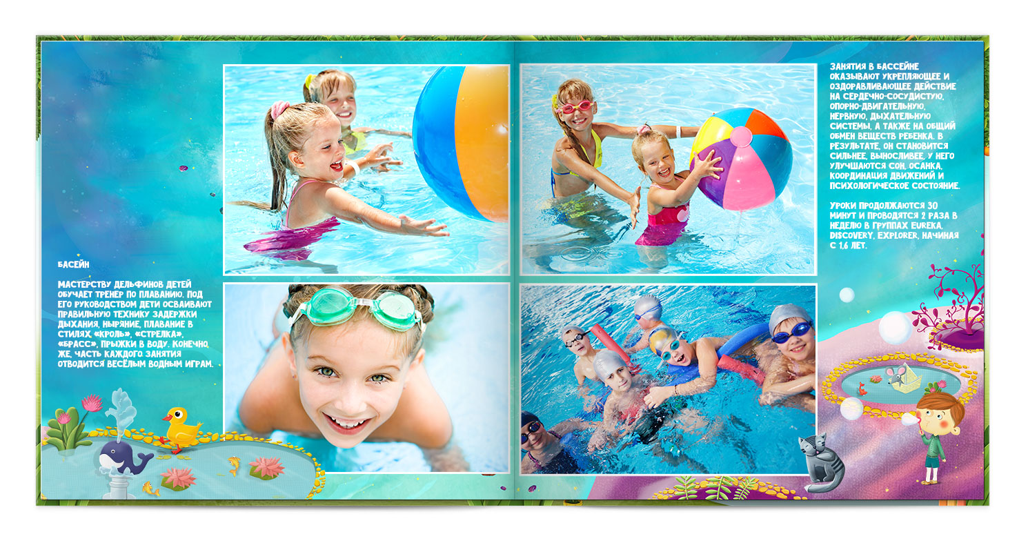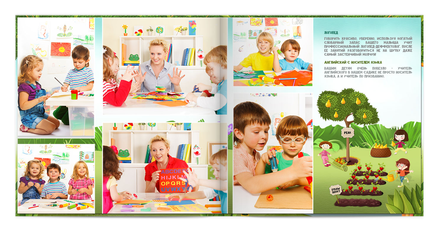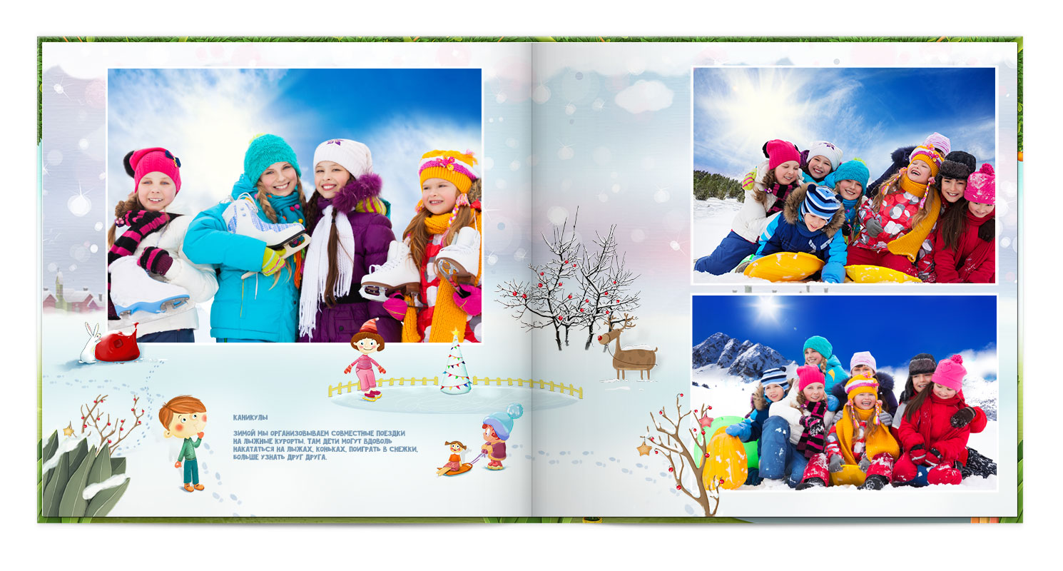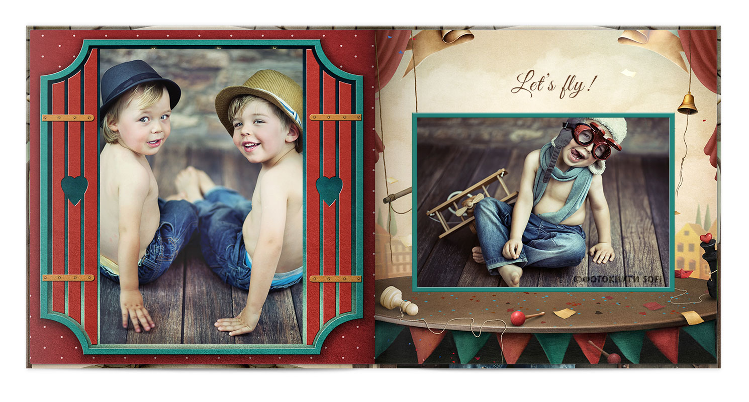 Дизайнер розміщує фото на сторінках, робить корекцію, додає елементи оформлення.