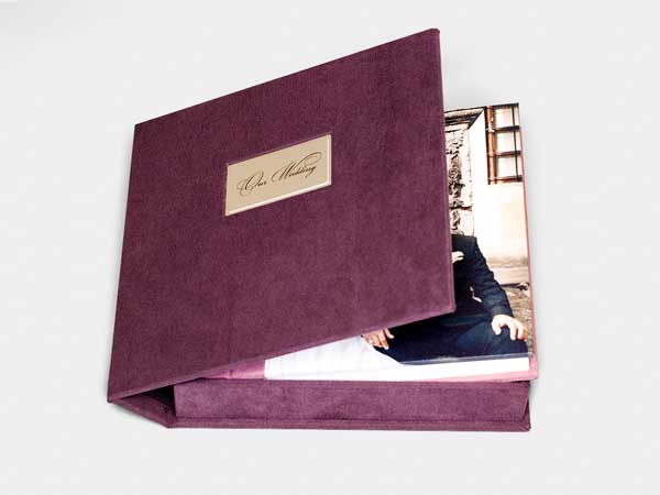 Додатково до фотокниги можна замовити короб. Короб виготовляється індивідуально під розмір книги зі шкірозамінника або тканини. На коробі може бути напис або фотографія.